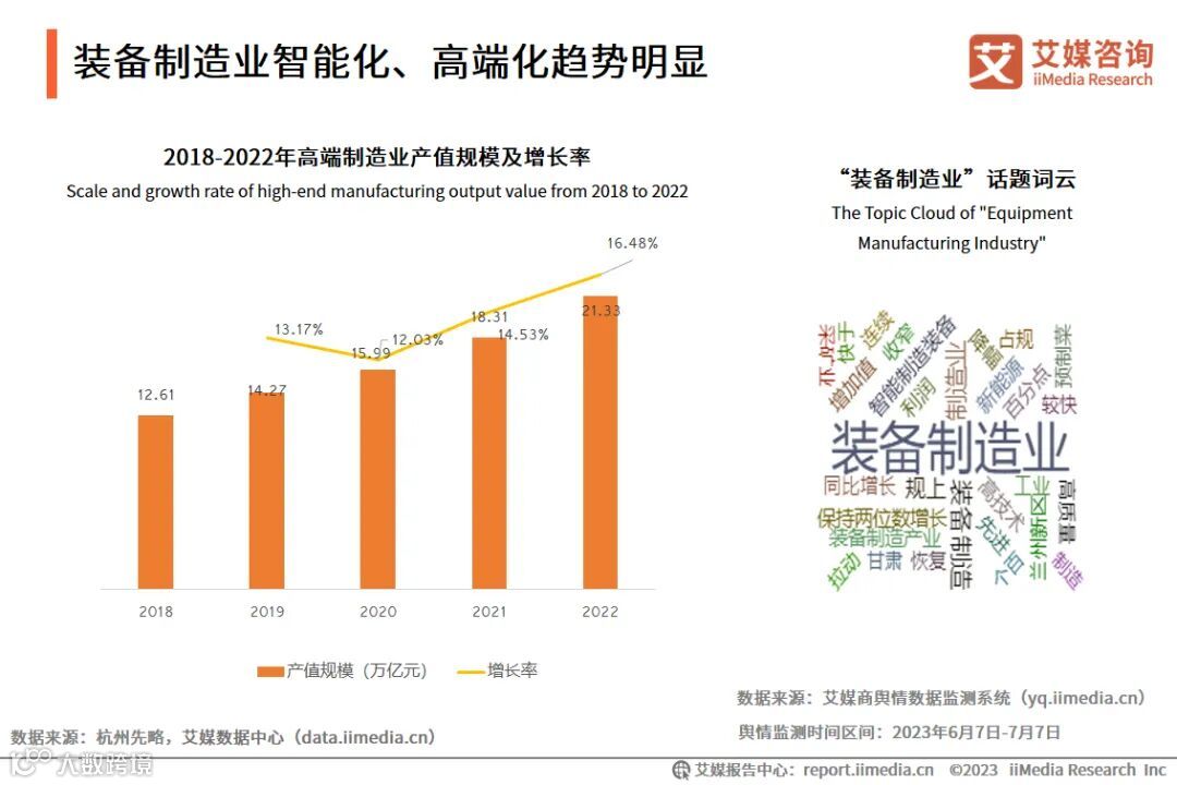 艾媒商舆情数据监测系统显示,“高质量”“高技术”“智能制造装备”是装备制造业近期高频词云。数据显示,2022年我国高端装备制造行业产值规模达21.33万亿元,较去年增长16.48%,但仍存在着产业基础薄弱、部分领域关键核心技术“卡脖子”等问题,全方位、宽领域、多层次推动装备数字化发展已刻不容缓。预制菜装备产业更要搭上装备制造业“智造”转型的风口,推动预制菜行业提质升级,实现高质量发展。