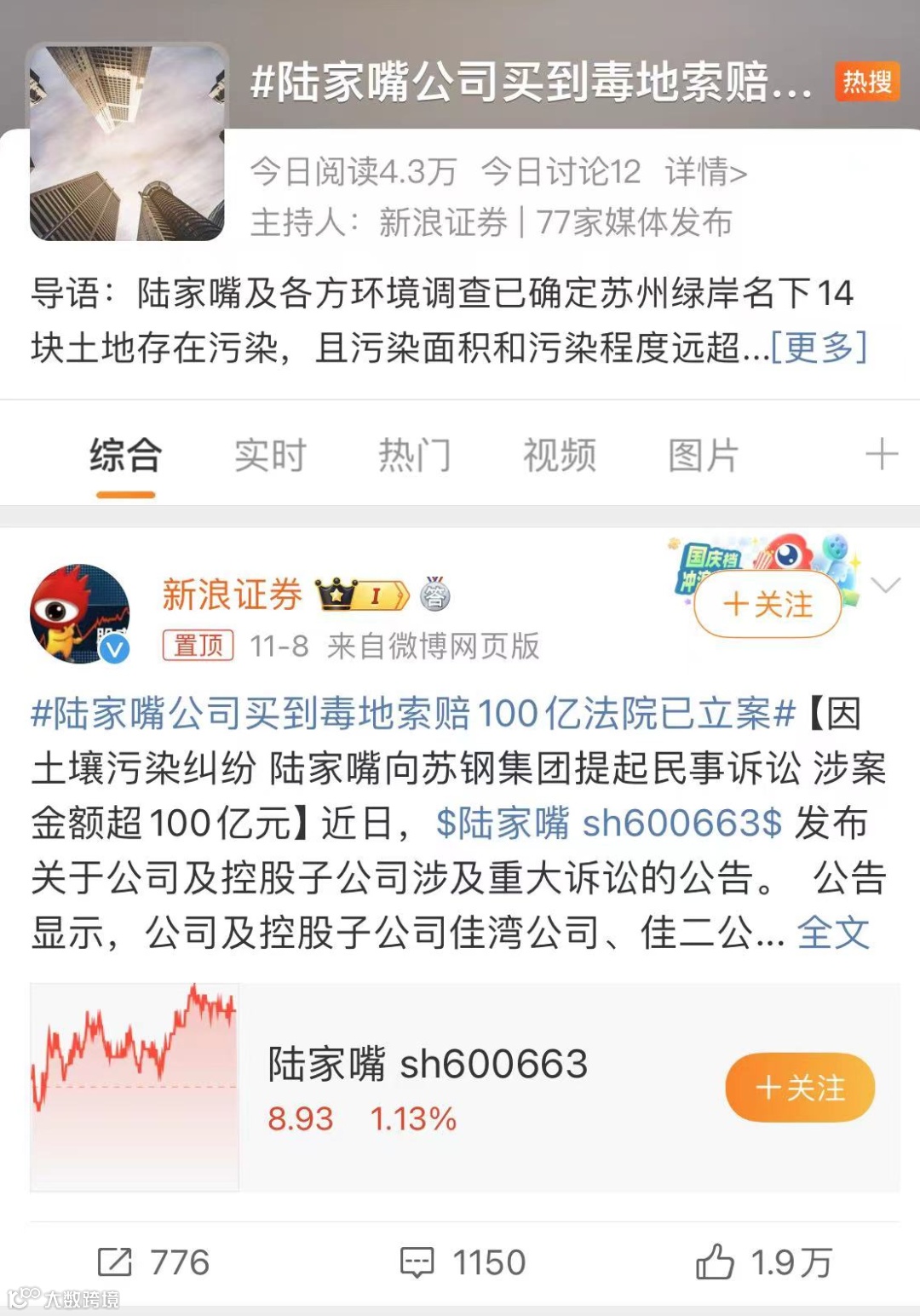 近日,陆家嘴金融贸易区开发股份有限公司因所买土地污染怒告苏钢集团等方面,并索要百亿巨额赔偿一事持续在网络发酵,引发各方高度关注。土地污染、环境治理等也成为高频提及的关键词。