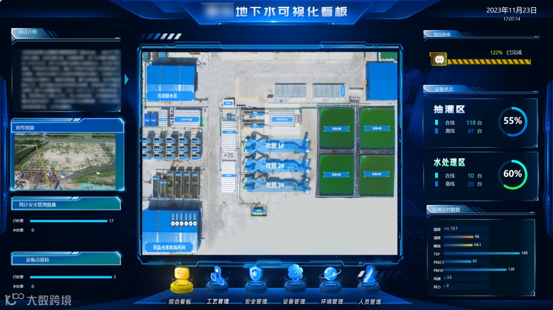 这个智慧平台将现场设备、人员、环境、安全和工艺在数字空间中建立了实时镜像,以更加精准的可视化方式呈现了现场的温度、扬尘等环境指标、设备运行状态与时长、水质指标和水处理流量等全面的环境治理数据和态势,为环境治理工作提供了更智能化、精准化、动态化的数据支持和决策支撑,所见即所得。