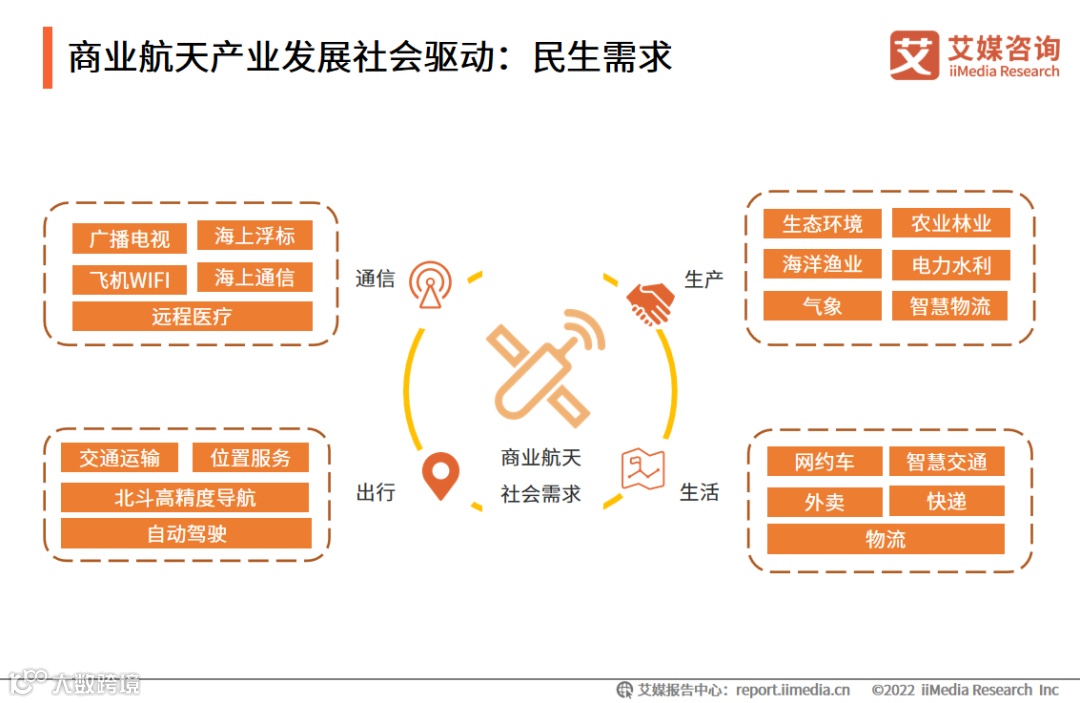 艾媒咨询分析师认为,环境、海洋、气象等生产端,以及网约车、快递、外卖等生活端,都极大地释放了商业航天的市场潜力,商业航天技术在提高社会运转效率的同时,还优化着人民的生活体验感。