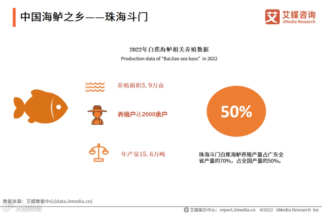 珠海市斗门区位于出海口,西江多条支流在这里与海水交汇,形成独特的咸淡水地带,非常适宜鲈鱼生长。上世纪80年代,斗门养殖户开始人工养殖海鲈。2009年,白蕉海鲈获评国家地理标志产品;2011年,斗门区获评“中国海鲈之乡”称号。截至目前,珠海市斗门区的白蕉海鲈养殖面积有3.9万亩,养殖产量占全国产量的50%,是全国最大的海鲈生产基地。
