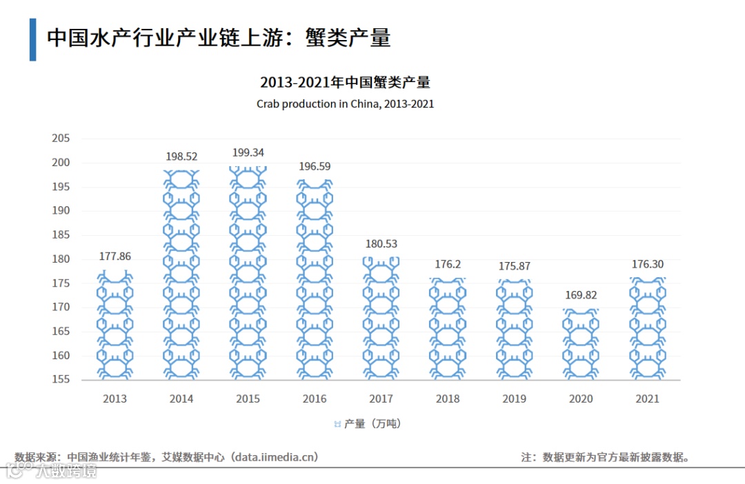 中国水产行业产业链上游:蟹类产量