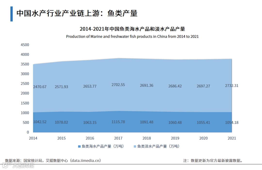 中国水产行业产业链上游:鱼类产量
