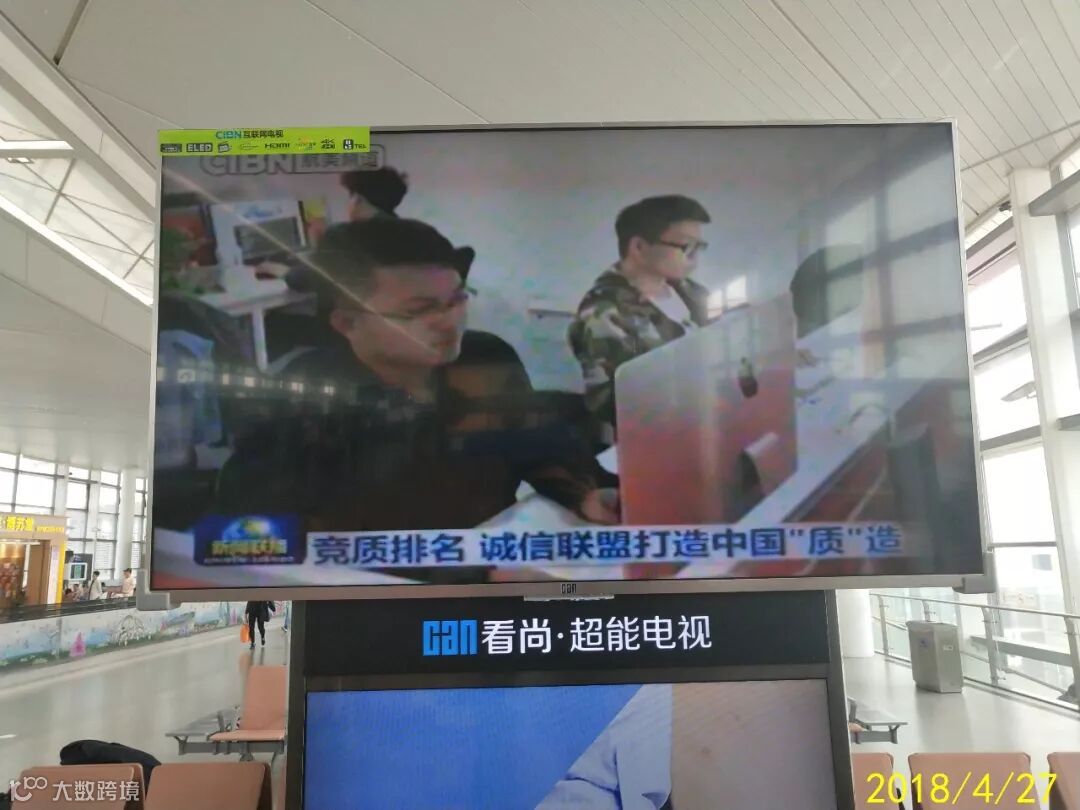 即日起,爱国者诚信联盟一如既往倡导的“竞质排名”于央视新闻联播、北京电视台315晚会现场的宣传视频在广州、成都、青岛、长沙、桂林、南昌、南京、乌鲁木齐、大连、杭州、济南、呼和浩特等12所城市的机场电视上开始循环播放。日播放27296次,月播放818880次;日覆盖人群8489500人,月覆盖人群超25468500人。 同时由衷感谢航美嘉成传媒对爱国者诚信联盟平台的鼎力支持。