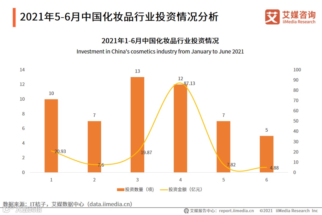1. 2021年5-6月中国化妆品行业投资情况分析