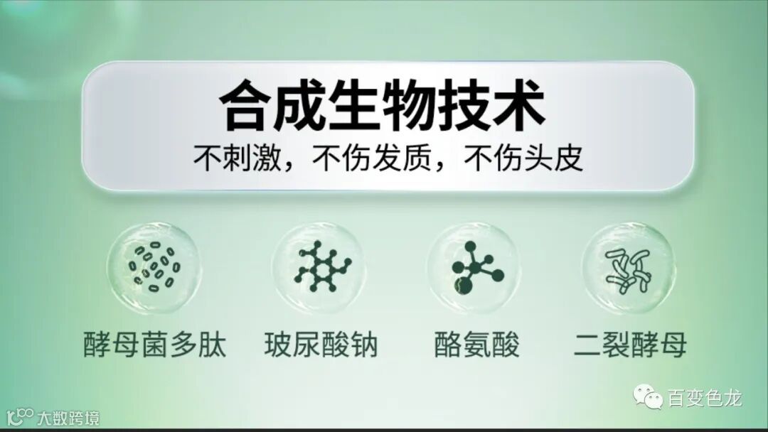 百变色龙,已经成功推出的发色染护创新单品-护色乳,经7年科研攻关,应用合成生物学技术,从黑松露中发酵合成黑色素多肽前体,通过涂抹到白发上自然渗透进入头发中,逐步给头发补充黑色素,在不伤头发的前提下实现头发恢复自然黑亮、自然色彩。护色乳含四大核心养发成分;包括酵母菌多肽,透明质酸钠,二裂酵母,酪氨酸,越用头发越柔顺,有效改善干枯毛躁,增强韧性。