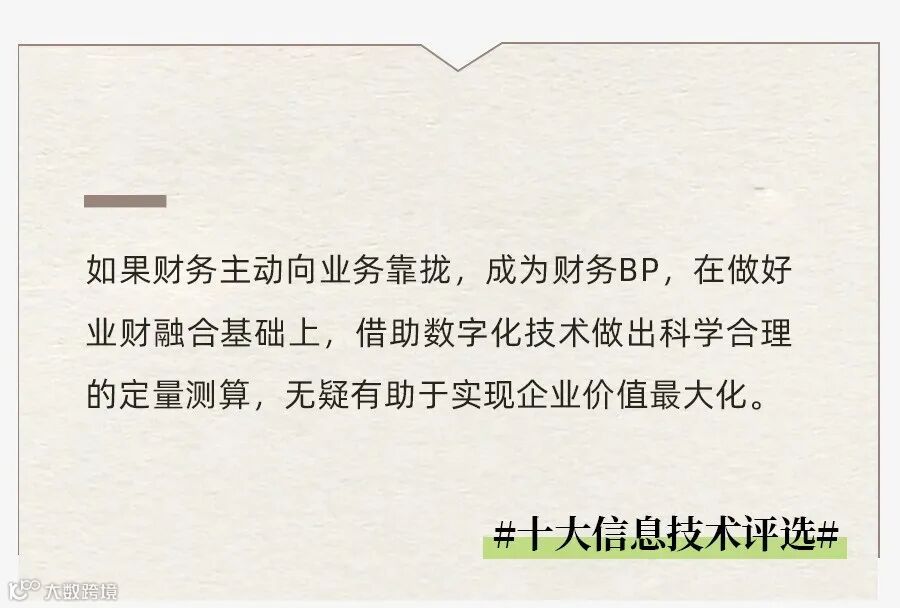 首先,数字技术大幅度提高了非财务信息获取的质量与效率,使财务成为业财一体化的有机组成部分,每一项业务都自动反馈对应的财务流程和数据,并将原始数据源高效准确地转化为有用的决策信息,优化资源配置。