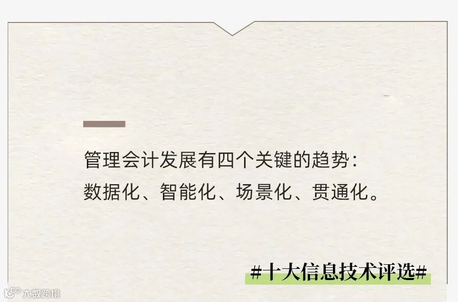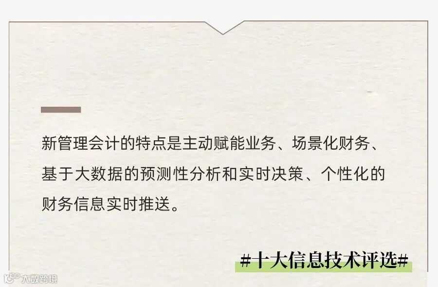 《关于全面推进管理会计体系建设的指导意见》中明确指出,信息化是支持管理会计理念与方法落地,支撑管理会计功能发挥和价值实现的重要手段和推动力量。