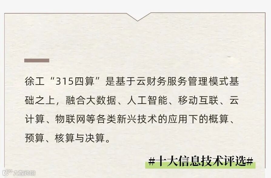 在管理会计体系建设中,徐工坚持“四算”原则,即概算的不算不动、预算的边算边动、核算的算买算卖和决算的算奖算罚。四算”是经营管控的完整闭环,徐工财务共享就是将云财务和“四算”完整的结合起来,以云财务为载体,形成闭环管理。同时,在“四算”中也使用了一些信息技术。