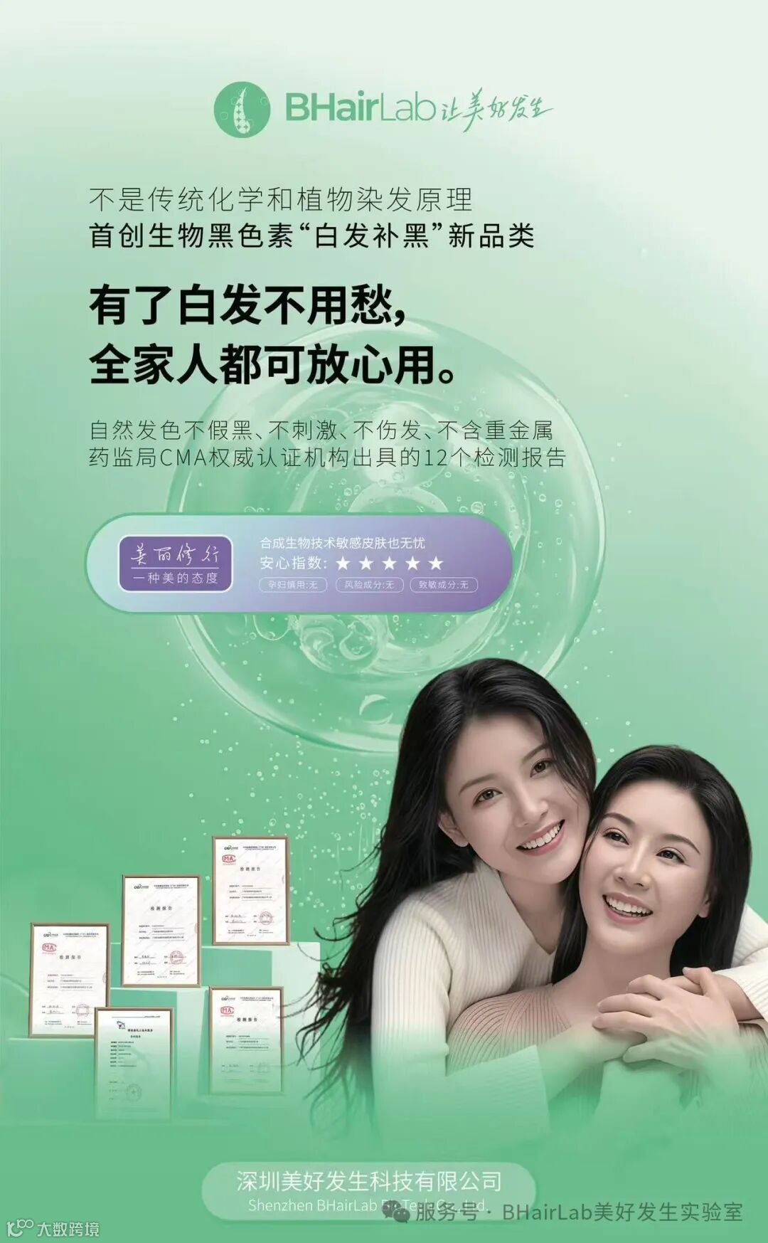 BHairLab®黑佳2的创新突破在于用生物黑色素替代传统PPD类致敏物质,其微分子结构能穿透毛鳞片,与角蛋白纤维形成共价键结合。这种仿生补色技术既保证了发丝内部自然发色的持久性,又避免了化学氧化对头皮的刺激。