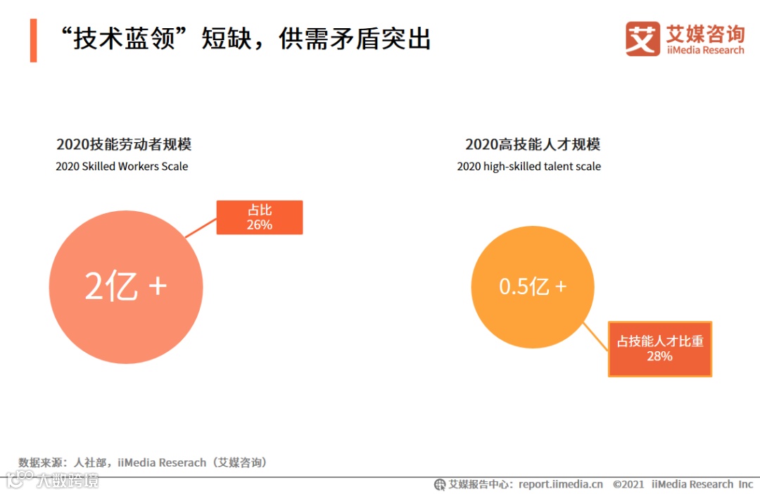 如今,越来越多的青年人依托职业教育,在平凡的工作岗位上实现了自己的人生价值。而随着用户规模的增长,职业教育迎来巨大发展空间。对此,艾媒咨询发布了《2020-2021中国职业发展教育现状及细分市场分析报告》,行业报告对当前我国职业教育市场发展概况、核心数据和市场竞争格局进行了全面分析,并且对相关用户的需求进行了深度调研,同时结合典型机构案例,提出了趋势预判。