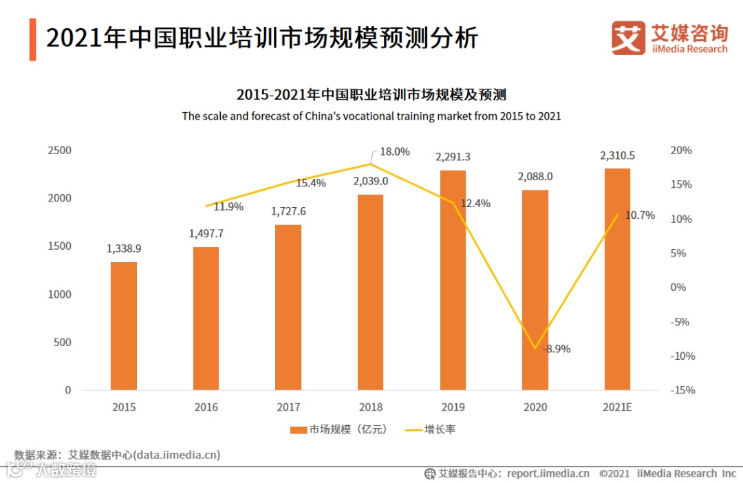 预计2021年中国职业培训市场规模超过2300亿元