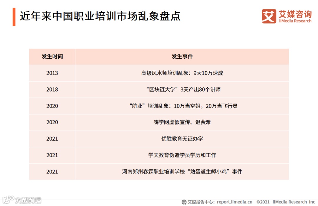1. 近年来中国职业培训市场乱象盘点