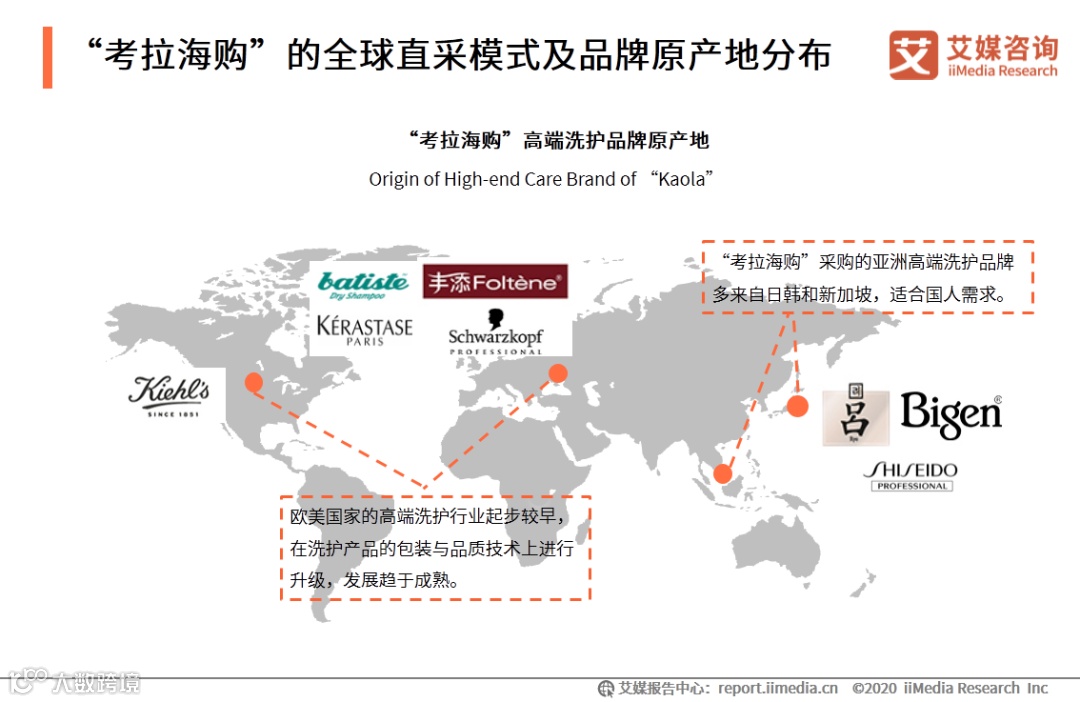 “考拉海购”采用全球直采模式,精选全球品质好货。目前“考拉海购”的高端洗护品牌原产地主要集中在欧美国家,采购的亚洲高端洗护品牌多分布于日本、韩国与新加坡。欧美高端洗护产品的技术与创新能力走在行业前列,而亚洲品牌更适合国内消费者肤质与使用需求,因此也具有较大发展潜力。