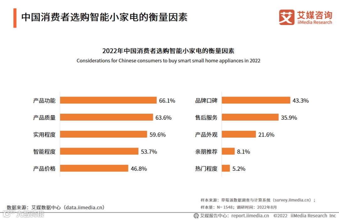 图表37:2022年中国消费者选购智能小家电的衡量因素