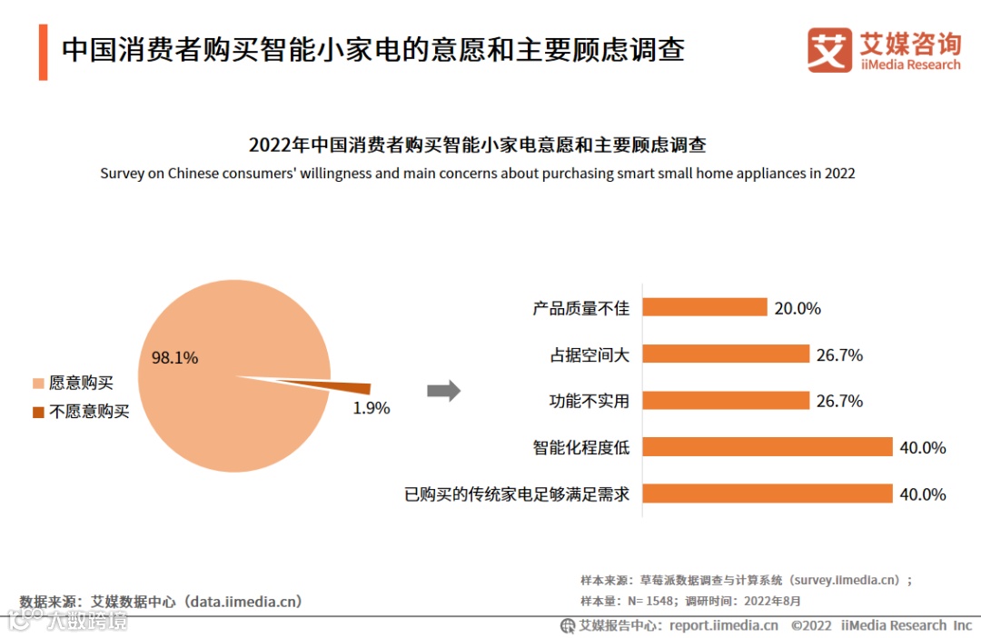 中国消费者购买智能小家电的意愿和主要顾虑调查