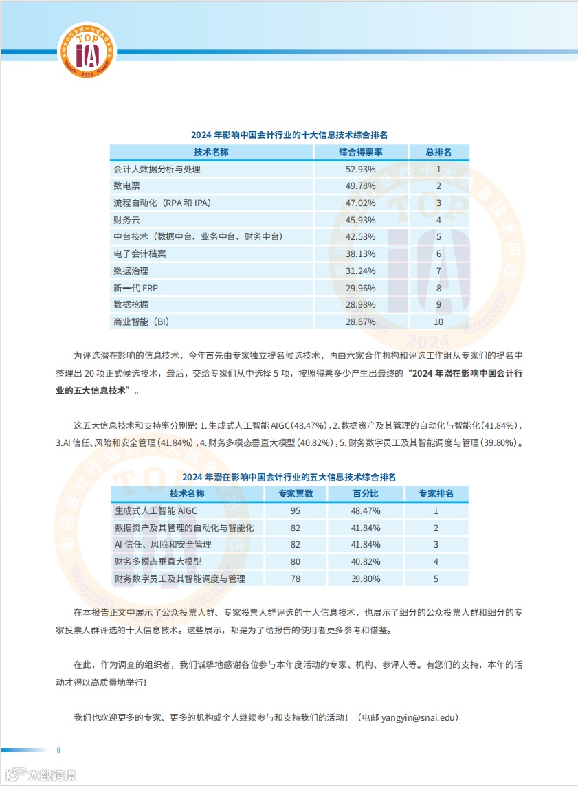 新发布 2024年影响中国会计行业的十大信息技术评选报告(附PDF下载)