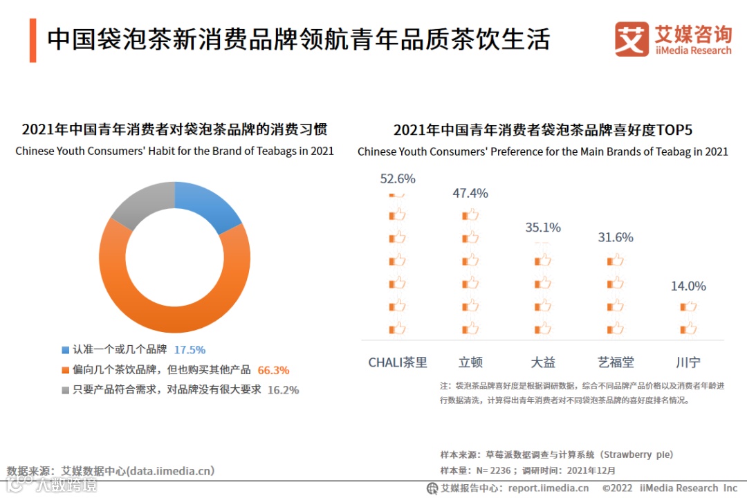 调研数据显示,66.3%的中国青年消费者偏向认准某几个品牌;在袋泡茶品牌喜好度中,CHALI茶里排名第一。