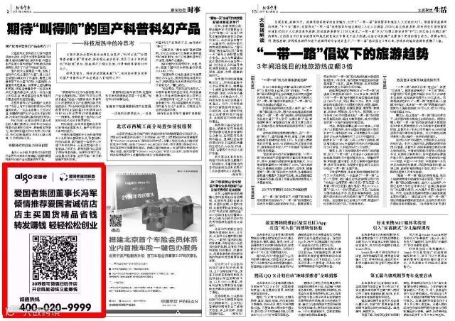 爱国者诚信店广告于2017年5月26日登上《参考消息-北京参考》了!