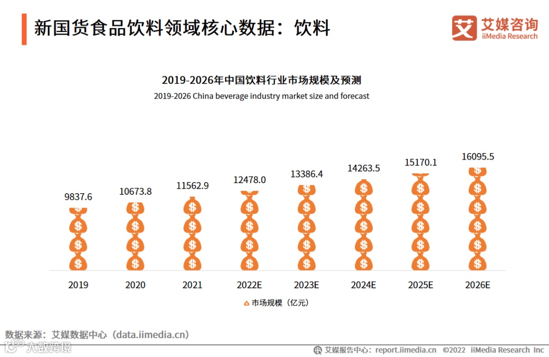 数据显示,近年来中国饮料市场规模持续上升,2020年中国饮料市场规模突破1万亿元,预计2022年这一规模将达到12478.0亿元。艾媒咨询分析师认为,近年来,随着中国经济发展、居民消费水平提升及消费结构的升级,中国饮料行业呈现出整体良好的增长态势。