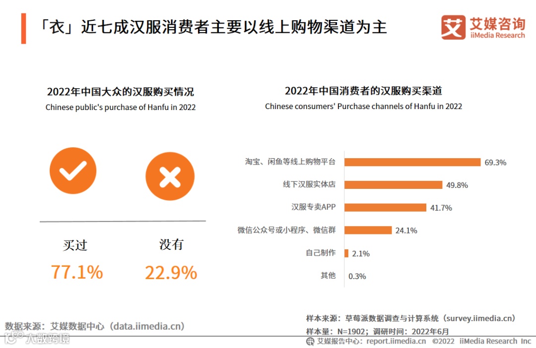 「衣」近七成汉服消费者主要以线上购物渠道为主