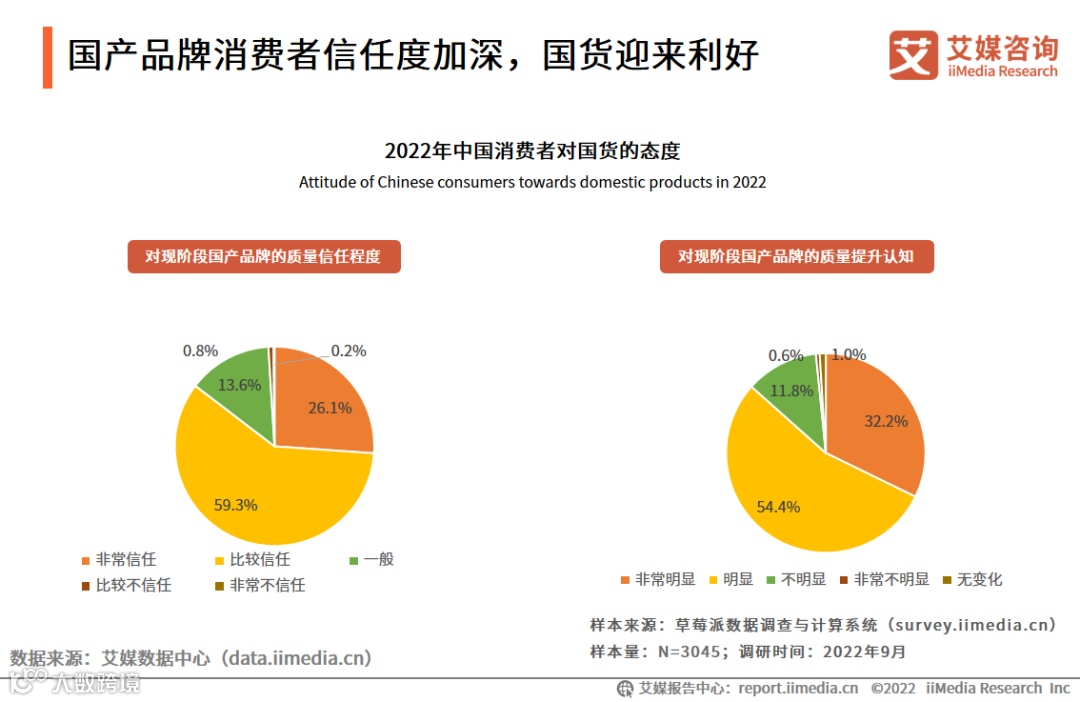 随着中国工业生产配套链逐步完善,国内品牌商家生产产品质量水平得到持续提升。从最初的家电、服饰等行业开始,中国品牌商品在市场的竞争力不断提升,也使更多消费者将选择投向国货,质量的提升是促进国产品牌发展迅猛的重要动力。