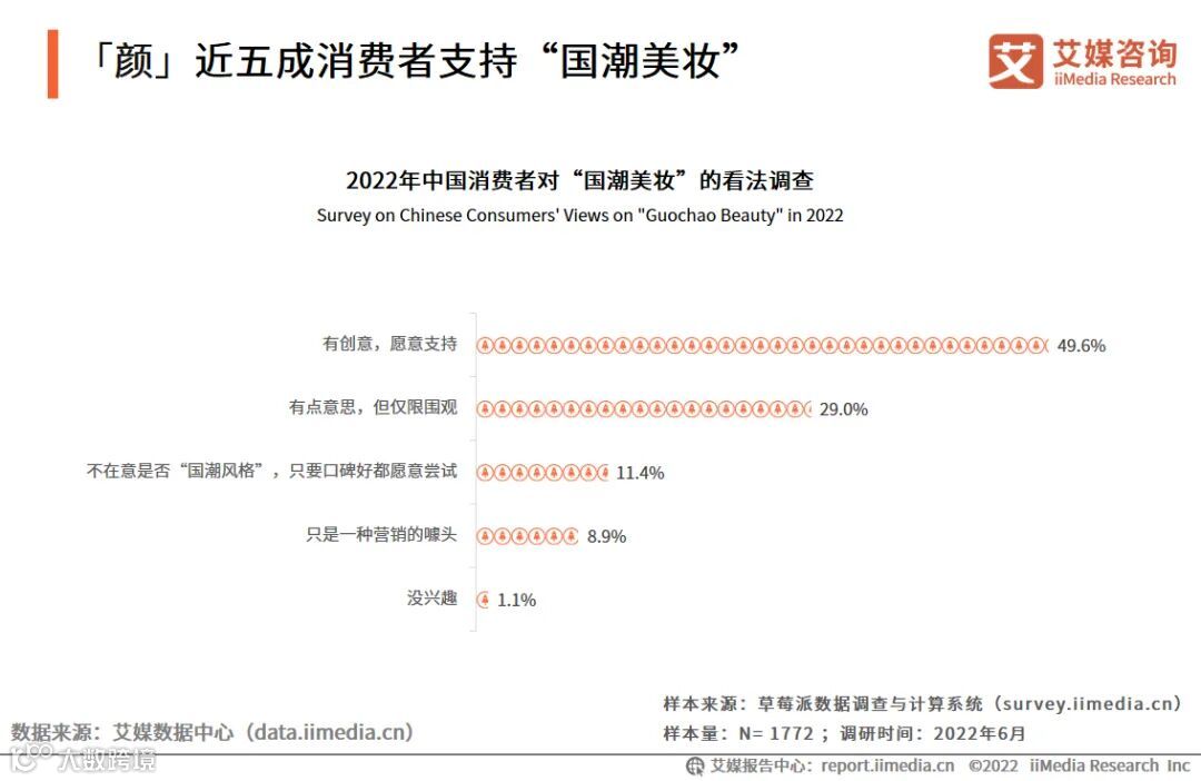 调研数据显示,2022年,近五成受访者表示“国潮美妆”有创意,并愿意支持其发展,近三成受访者认为“国潮美妆”发展路线有意思,但仍处于观望阶段。艾媒咨询分析师认为,近年许多品牌凭借“国潮风”成功破圈,俘获众多消费者,但产品仍需回归本质,只有外形与品质兼顾,才能转化在“国潮”路线中引入的流量。