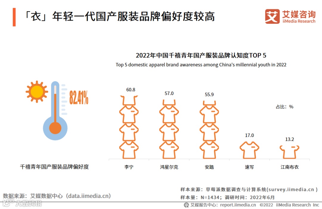 图表14 2022年中国千禧青年国产服装品牌认知度TOP 5
