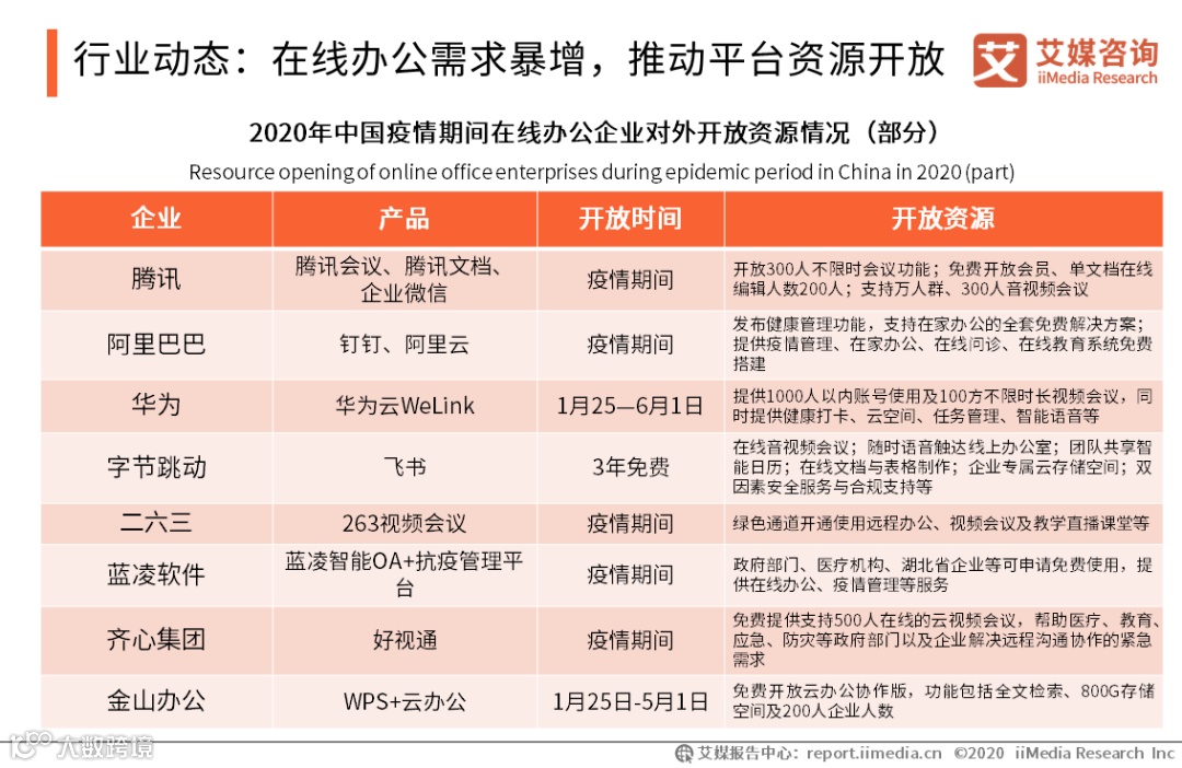 6.行业动态:2020年中国疫情期间在线办公企业对外开放资源情况