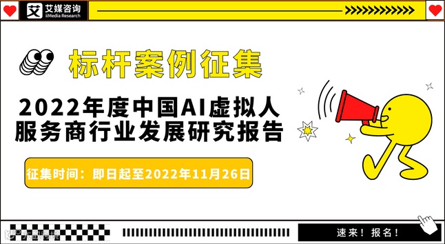 为了帮助企业更清晰地掌握中国AI虚拟人技术服务行业发展状况、市场特征、市场需求及未来成长空间,挖掘创新模式,研究竞争状况,梳理各企业市场地位,描绘产业链图谱关键节点企业,帮助决策者、投资者以及消费者更好甄别企业和产品,艾媒咨询计划于2022年12月发布《2022年度中国AI虚拟人服务商行业发展研究报告》。征集AI虚拟人技术服务行业优秀企业参与,择优作为联合发布单位或者年度标杆案例出现。