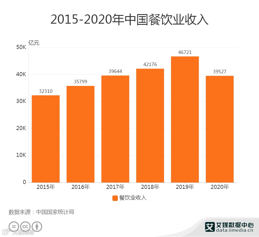 近年来,中国餐饮业市场规模持续壮大,这其中,有着每一位“干饭人”的力量。数据显示,2019年中国餐饮行业收入为4.67万亿元。2020年受疫情影响,我国餐饮行业收入下降至3.95万亿元。随着疫情逐渐受到控制,餐饮业步入快速复苏通道,发展势头将持续强劲。