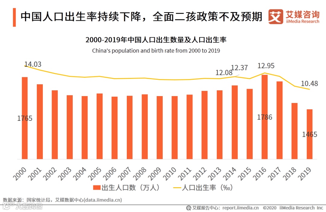 图表4:2000-2019年中国人口出生数量及人口出生率