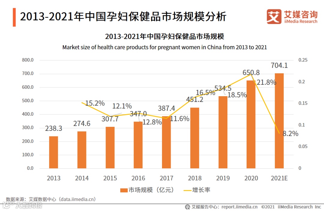 2013-2021年中国孕妇保健品市场规模分析