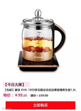 康佳KHK-1809多功能全自动加厚玻璃养生壶1.8L