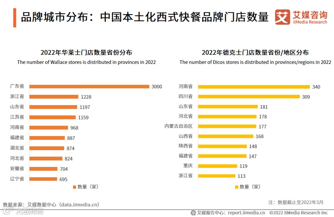 国外品牌集中分布在一线城市,而本土化的西式快餐品牌,如华莱士和德克士主要分布在三四线城市,抢占大量的下沉市场。
