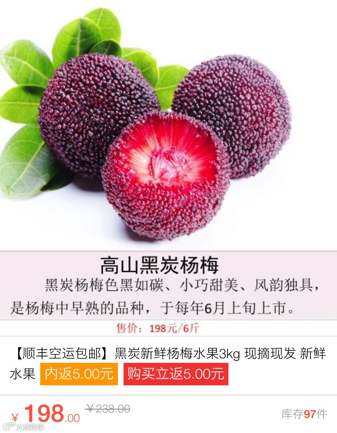 3、东魁杨梅于6月10日起陆续发货