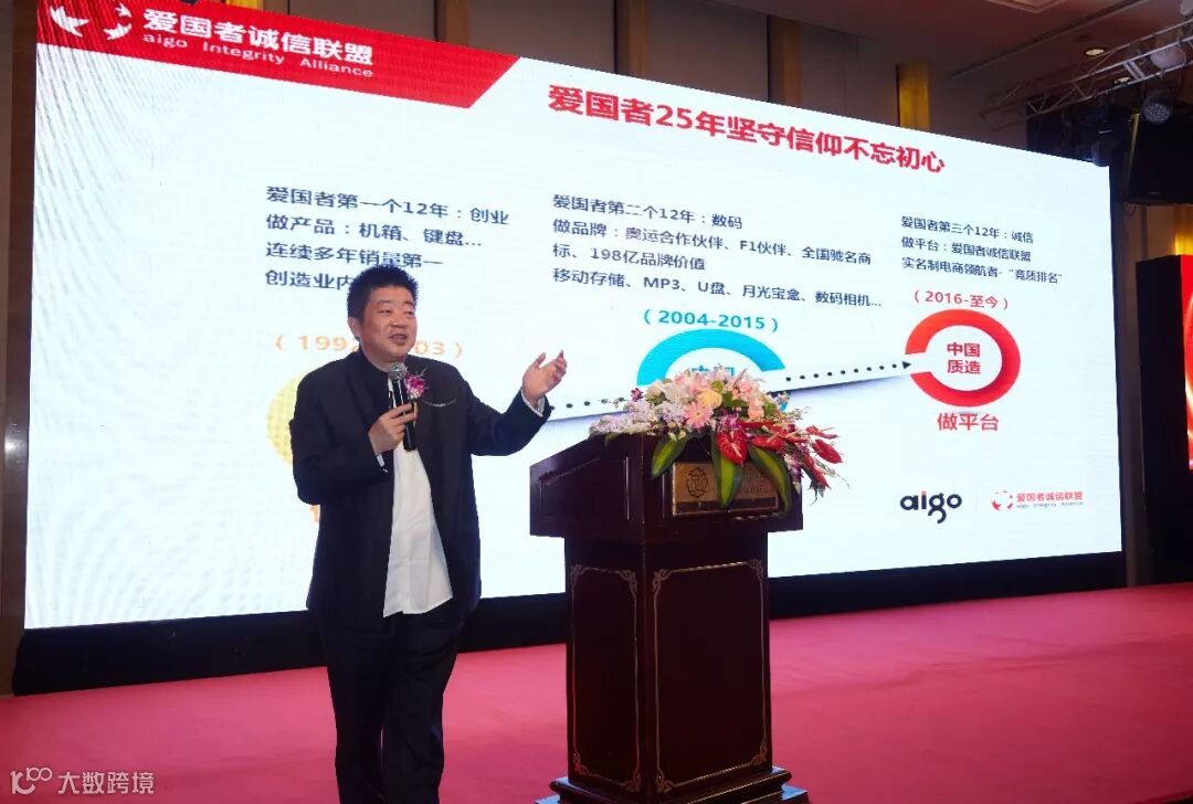 主办方、爱国者集团董事长冯军致开幕辞,呼吁中国民族诚信品牌抱团崛起,并预祝盛典圆满成功。