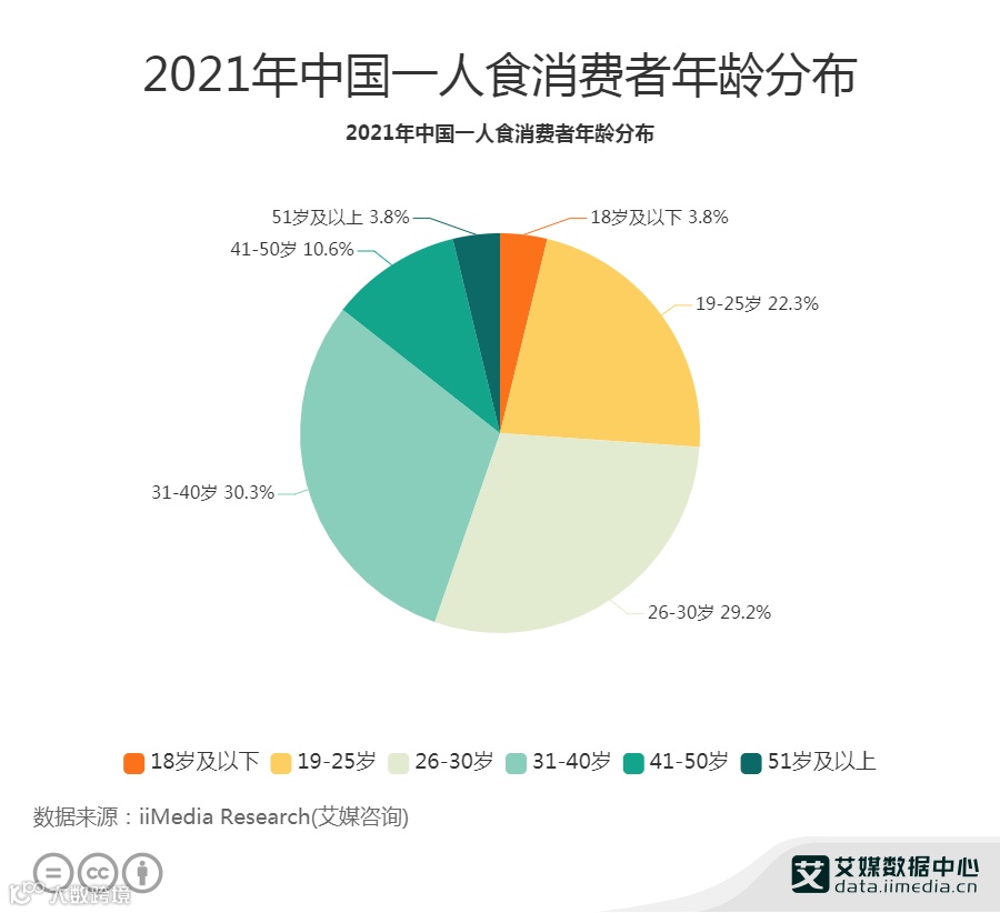 从用户画像来看,59.5%一人食消费者年龄在26-40岁,其中31-40岁消费者占比30.3%,26-30岁消费者占比29.2%。此外,19-25岁消费者所占的比例也超两成,为22.3%。