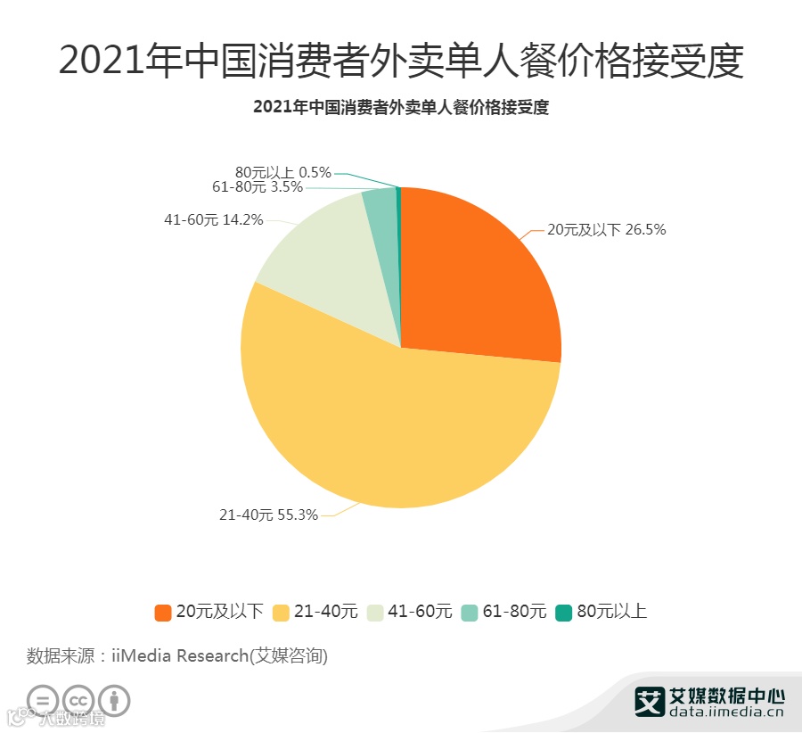 55.3%消费者接受外卖单人餐的价格在21-40元
