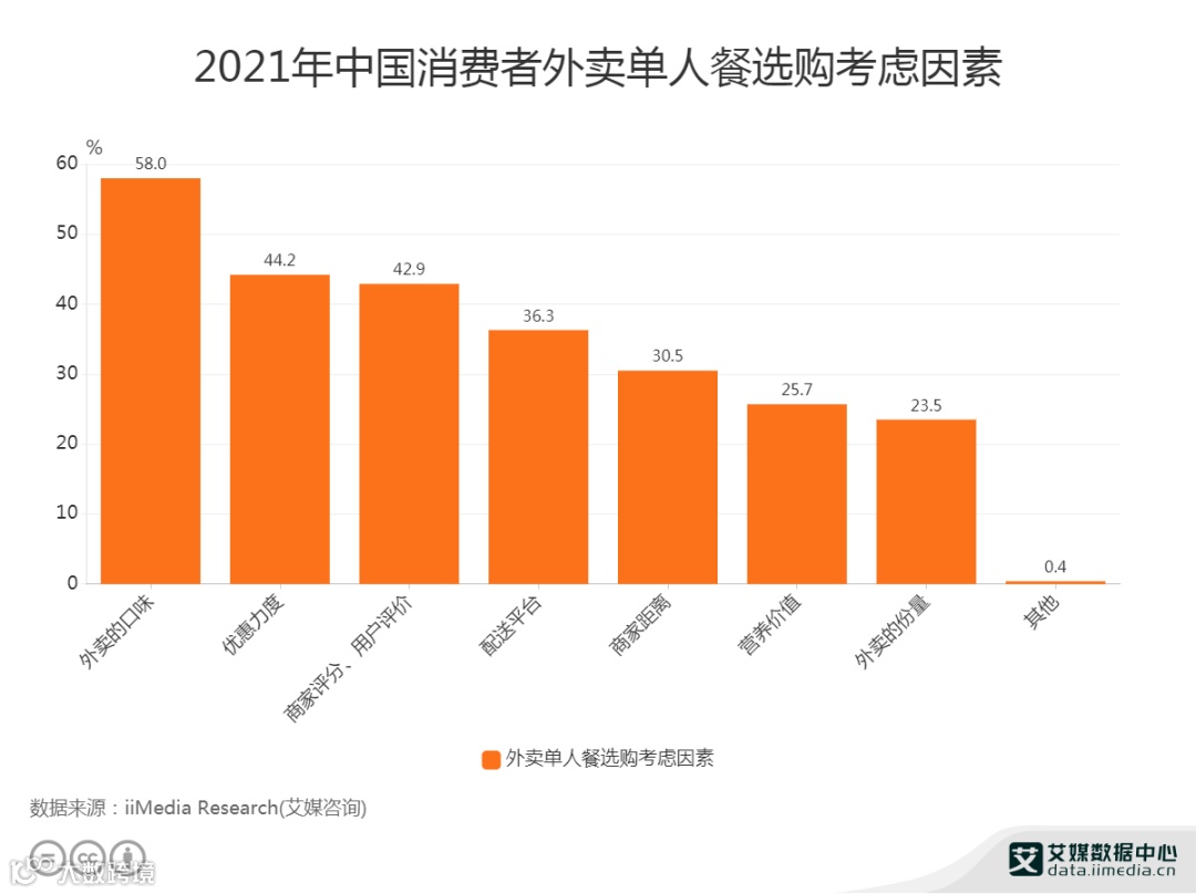 58.0%消费者选购外卖单人餐首要考虑口味