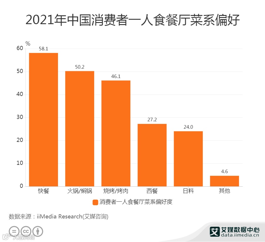 58.1%消费者选择一人食餐厅菜系更偏好快餐