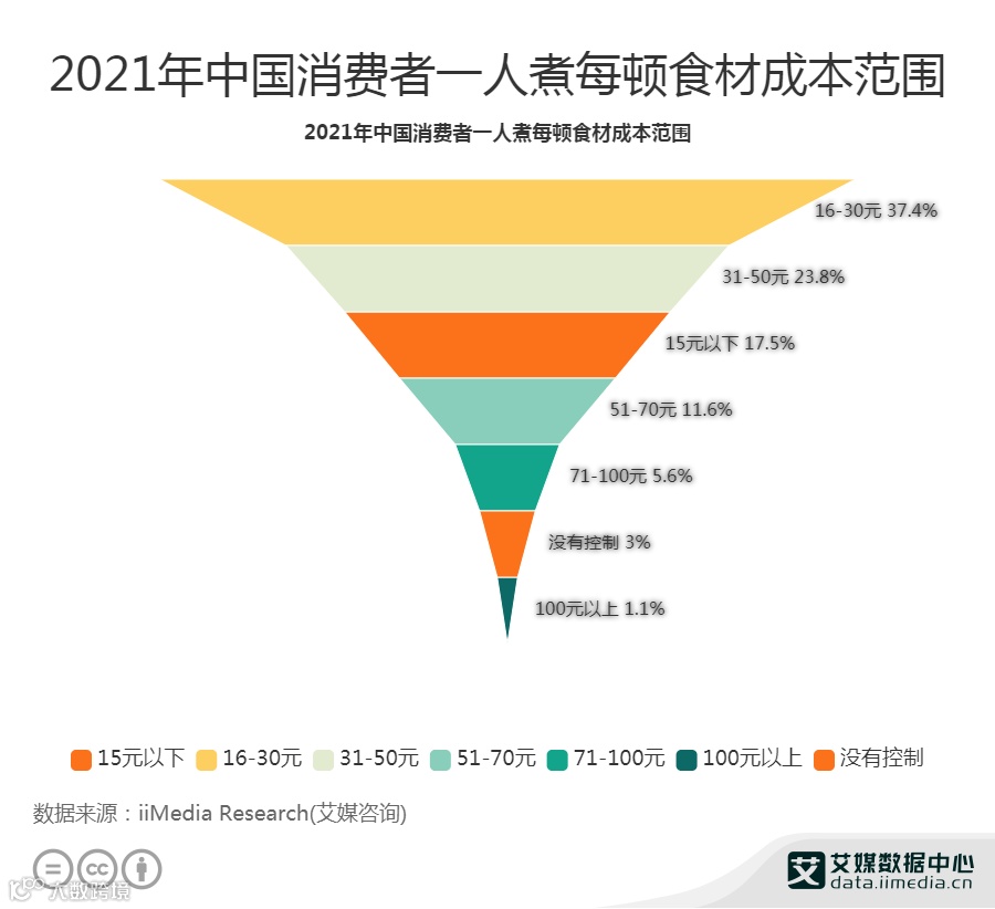 37.4%消费者一人煮每顿食材成本在16-30元