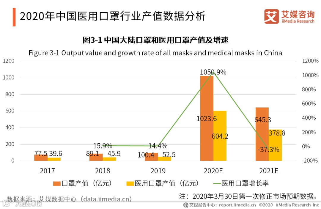 3-1-2 2020年中国医用口罩行业产值数据分析