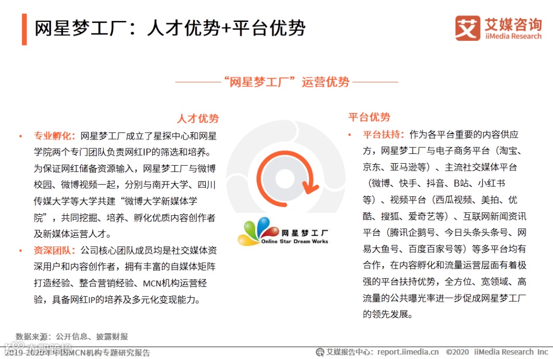 究其根本,人才优势与平台优势是网星梦工厂在众多MCN机构脱颖而出的关键。一方面资深团队以专业体系挖掘并培养网红后备军,同时,全方位、宽领域、高流量的平台合作进一步扩大公众曝光度,提升平台影响力。