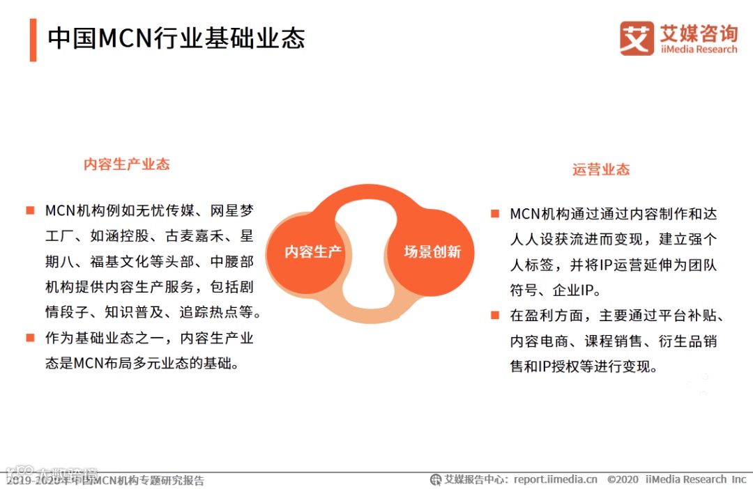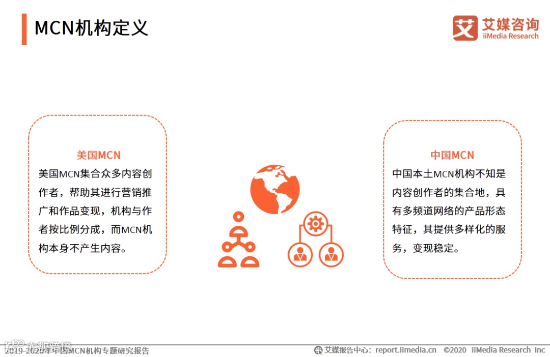 MCN(Multi-Channel Network),最早源于美国的YouTube, 经过本土化创新后逐渐形成了多频道网络的产品形态,将PGC内容联合起来,在资本的有力支持下,保障内容的持续输出,从而最终实现商业的稳定变现。艾媒咨询分析师认为,MCN经过本土化后,不断创新发展,呈现出全新的商业模式。