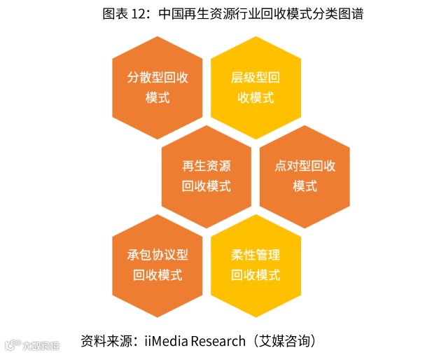 从再生资源回收模式来看,主要包括分散型回收模式、层级回收模式、点对点回收模式、柔性管理模式和承包协议模式五类。其中分散型回收模式是由大量分散回收者、小型初级拆解者、生产作坊,以及数个废旧物资集散地组成,分散的回收人员将废旧物资收集起来,经过初级的分类拆解,到废旧物资集散地出售,此模式最为常见。