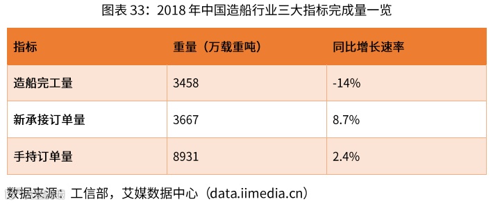 据工信部官方披露,2018年,中国造船三大指标以载重吨计国际市场份额均超过40%,继续保持世界领先;以修正总吨计造船完工量、新接订单量、手持订单量分别占国际市场份额的36.3%、35.4%和35.8%,其中新接订单居第二位,完工量和手持订单量均位居第一。