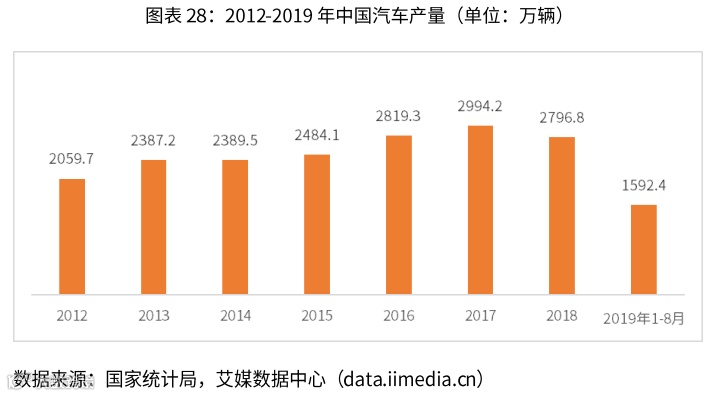 2018年,中国汽车总产量达2796.8万辆,较2017年减少6.6%。