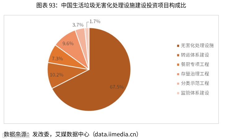 “十三五”期间,中国生活垃圾无害化处理设施建设总投资预估2518.4亿元;其中,无害化处理设施建设投资1699.3亿元,收运转运体系建设投资257.8亿元,餐厨垃圾专项工程投资183.5亿元,存量整治工程投资241.4亿元,垃圾分类示范工程投资94.1亿元,监管体系建设投资42.3亿元。