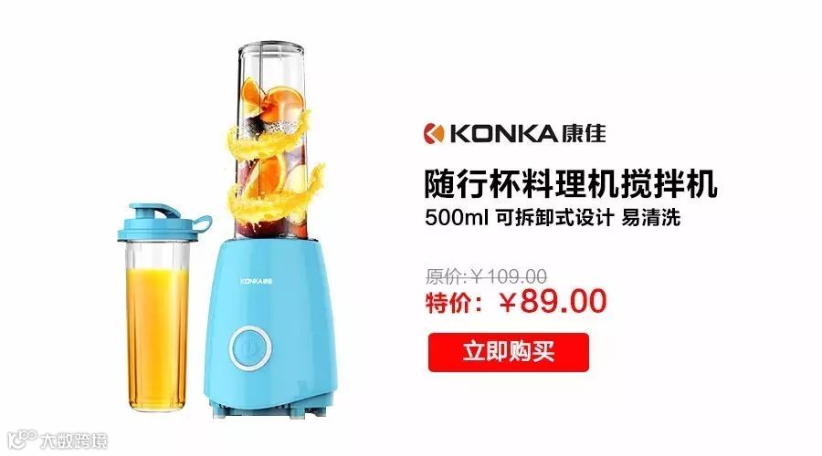 【包邮】康佳KONKA 随行杯料理机搅拌机 500ml 可拆卸式设计 易清洗